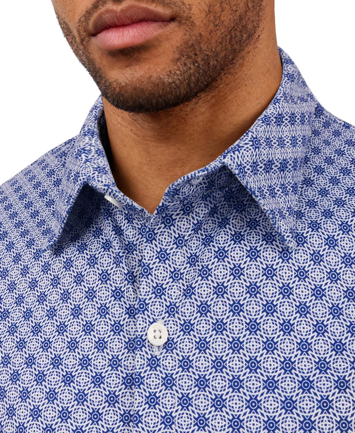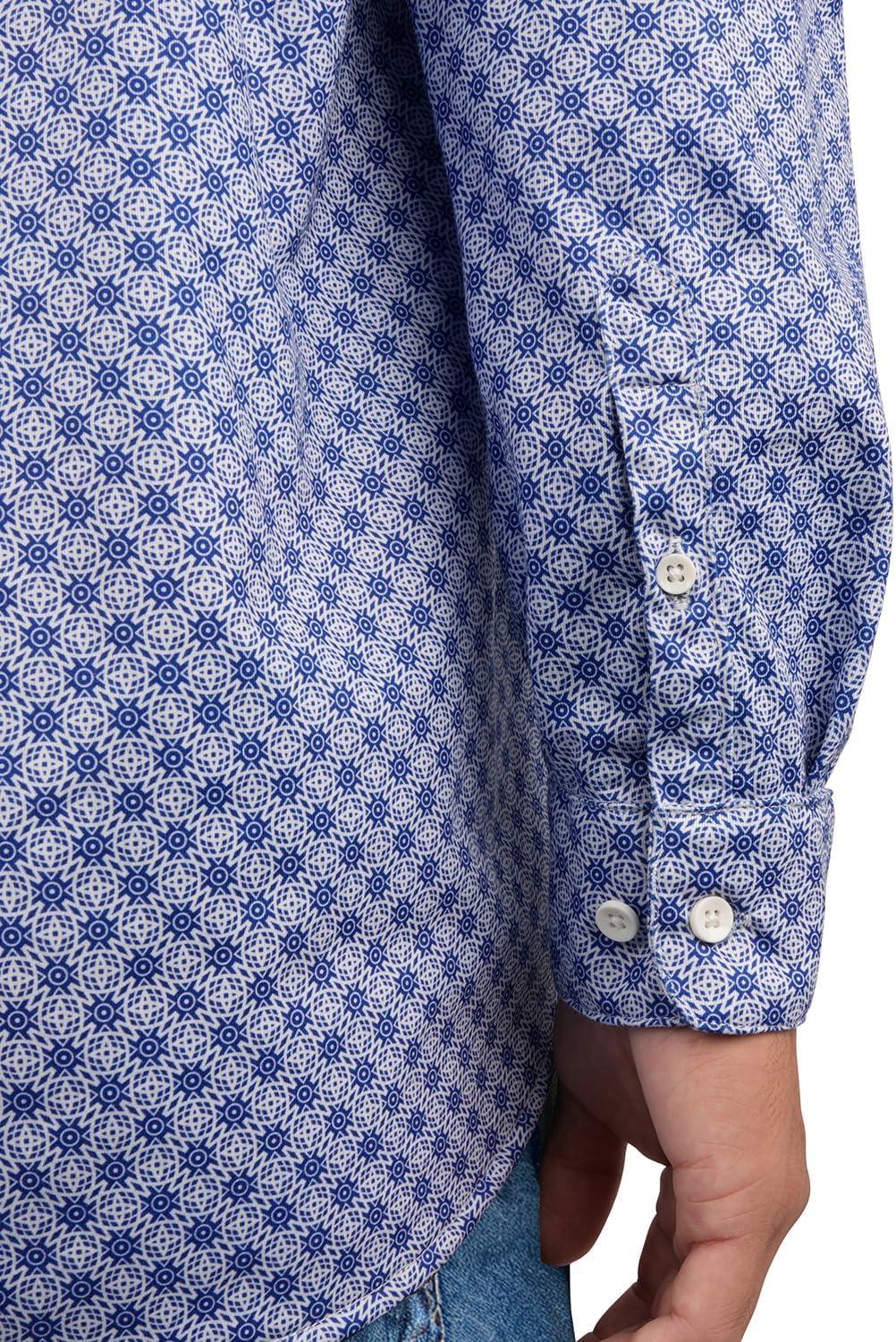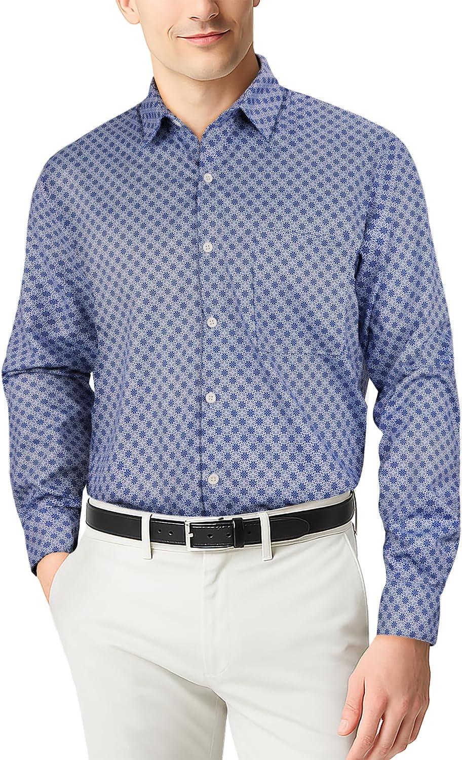 KYKU Mens Printed Casual Shirts Soft Long Sleeve Button Down Shirts, Regular Stretch, with Pocket(Blue Printed Long Sleeve Shirts for Men)