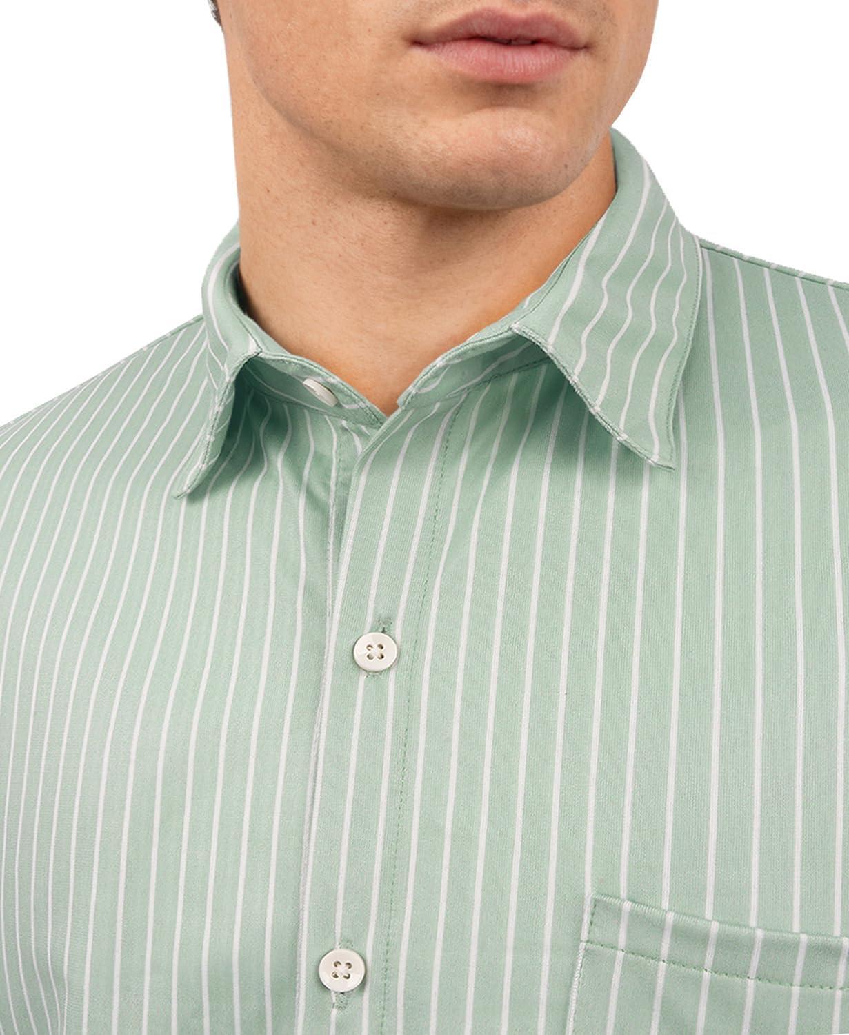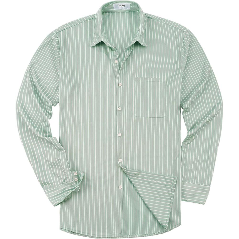 KYKU Mens Printed Casual Shirts Soft Long Sleeve Button Down Shirts, Regular Stretch, with Pocket(Sage Green Striped Long Sleeve Shirts for Men)