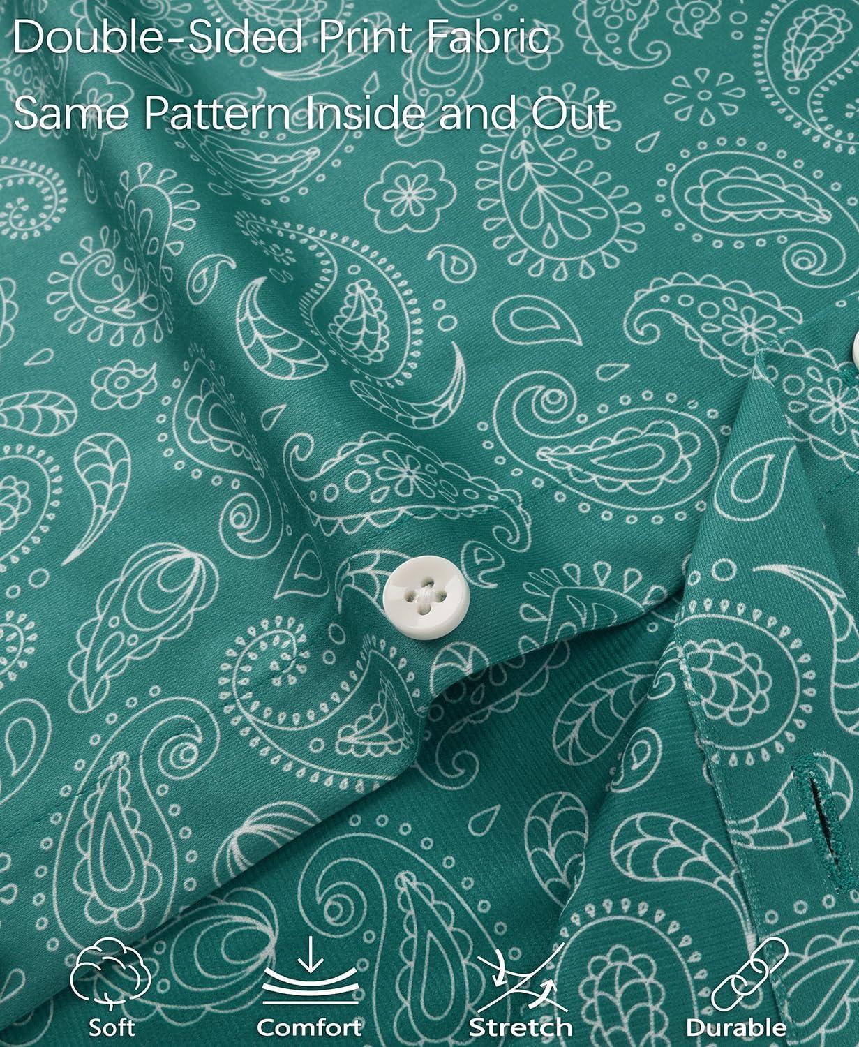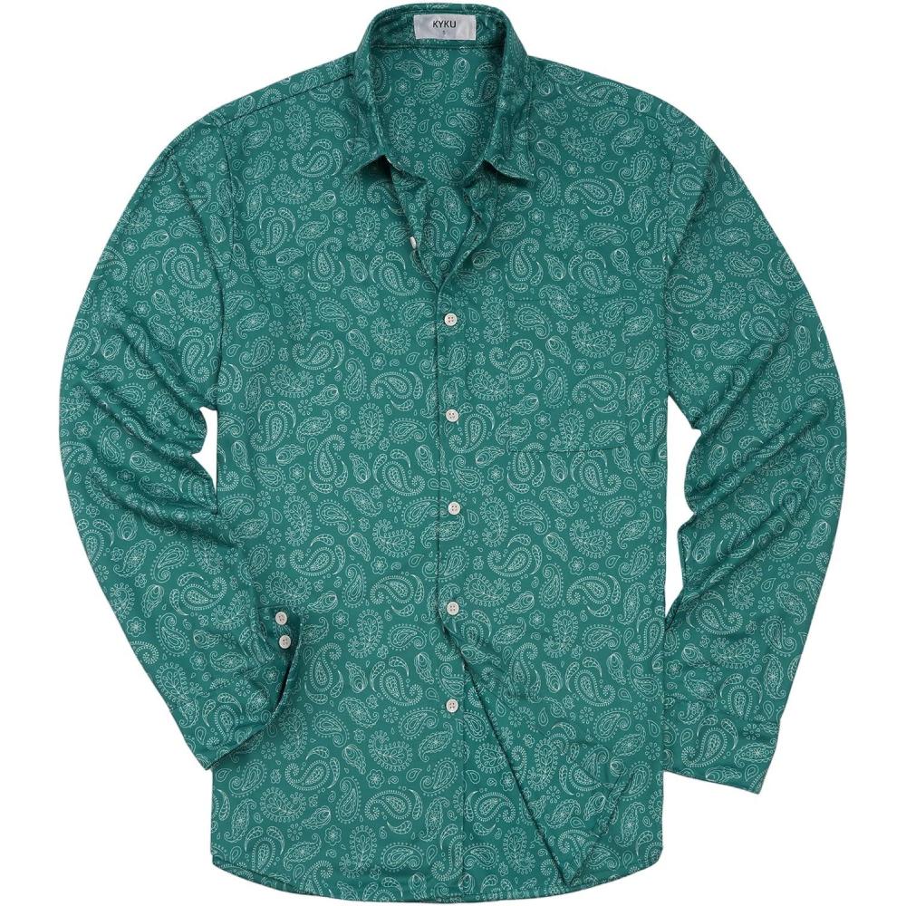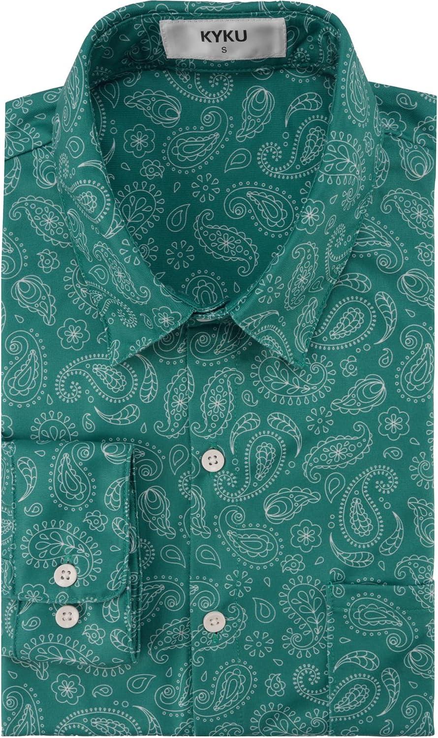 KYKU Mens Printed Casual Shirts Soft Long Sleeve Button Down Shirts, Regular Stretch, with Pocket(Teal Paisley Long Sleeve Shirts for Men)