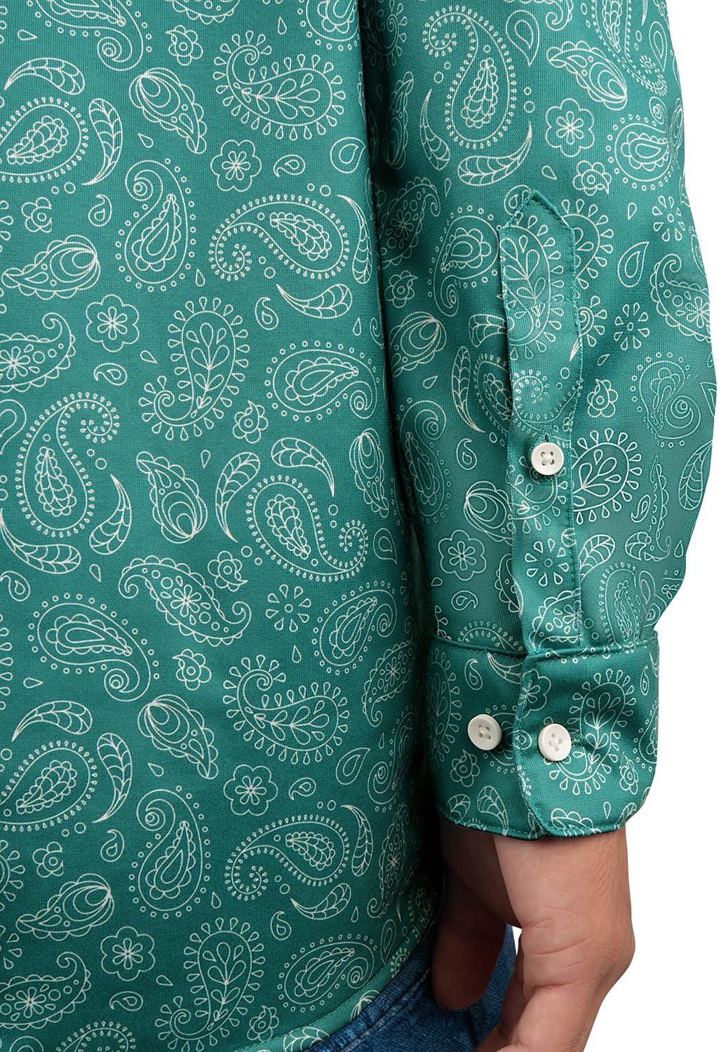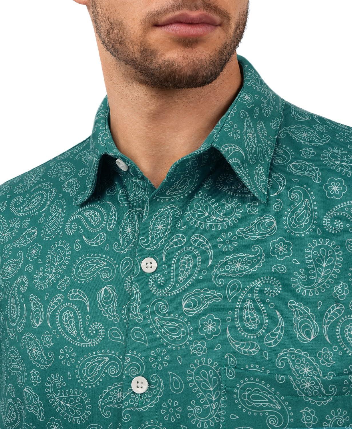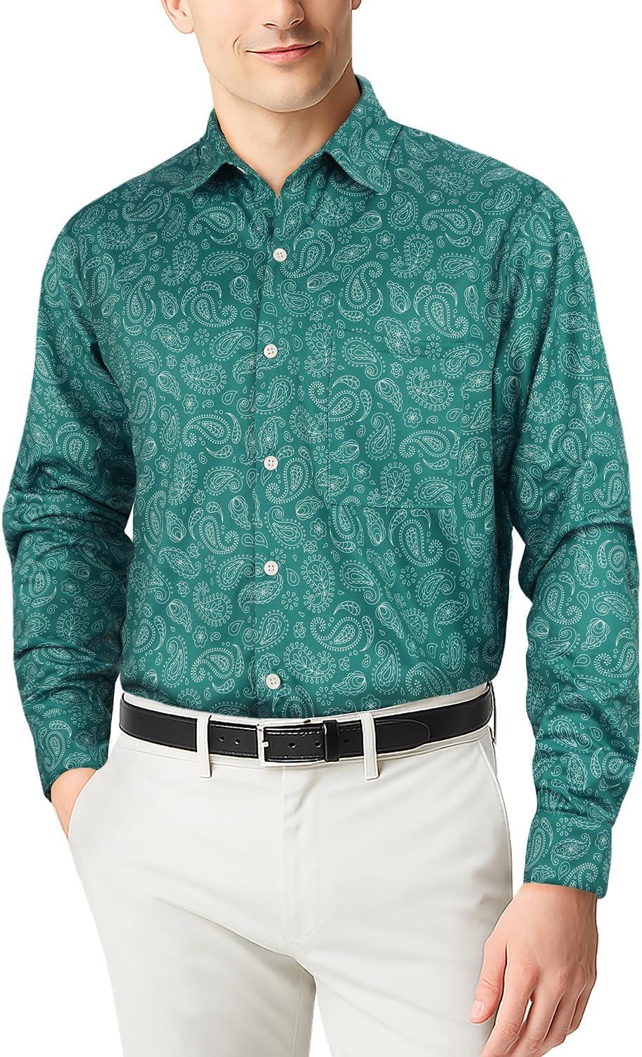 KYKU Mens Printed Casual Shirts Soft Long Sleeve Button Down Shirts, Regular Stretch, with Pocket(Teal Paisley Long Sleeve Shirts for Men)