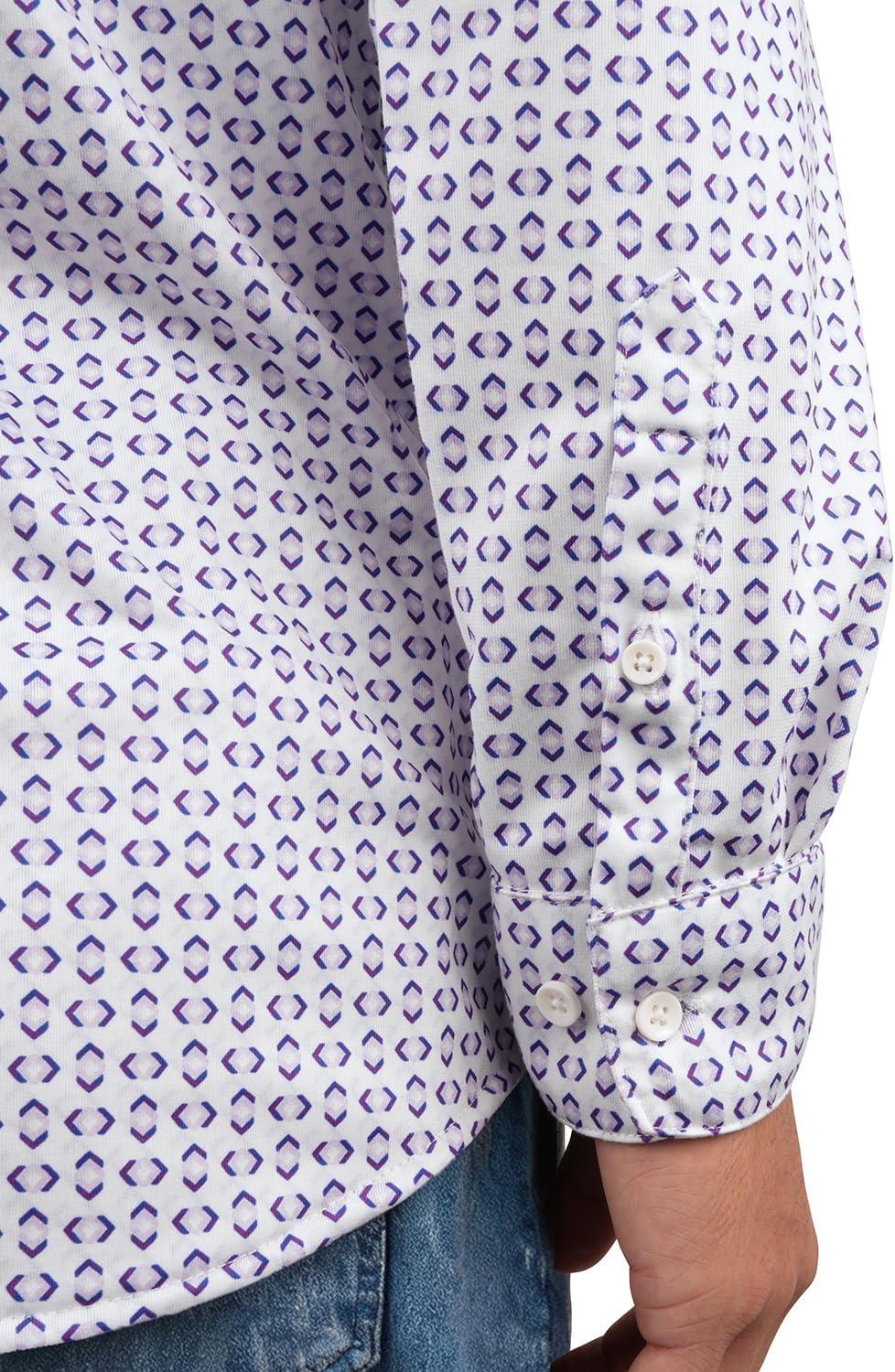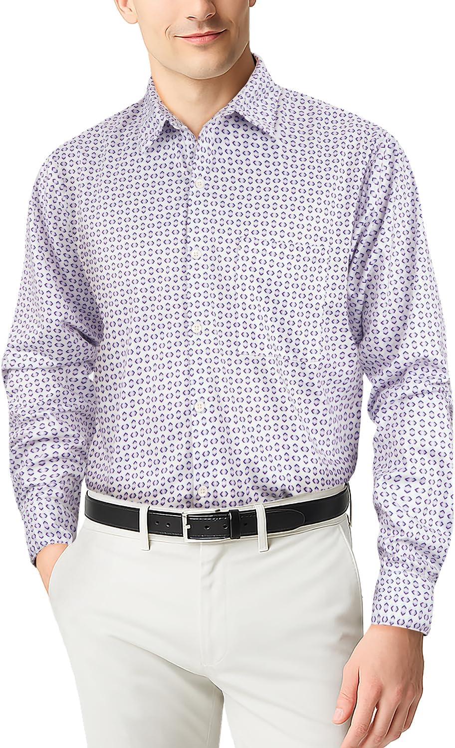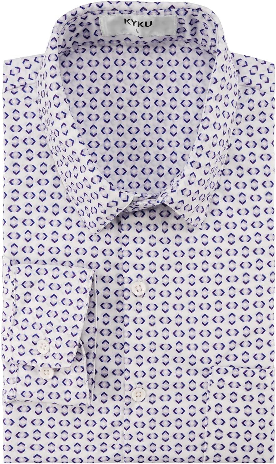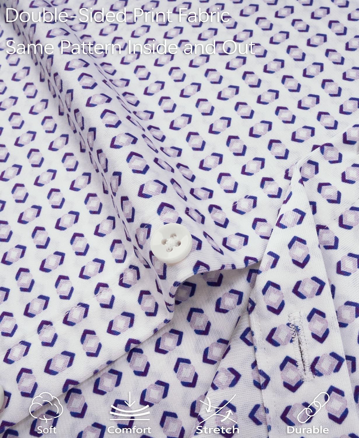 KYKU Mens Printed Casual Shirts Soft Long Sleeve Button Down Shirts, Regular Stretch, with Pocket(White Purple Long Sleeve Shirts for Men)