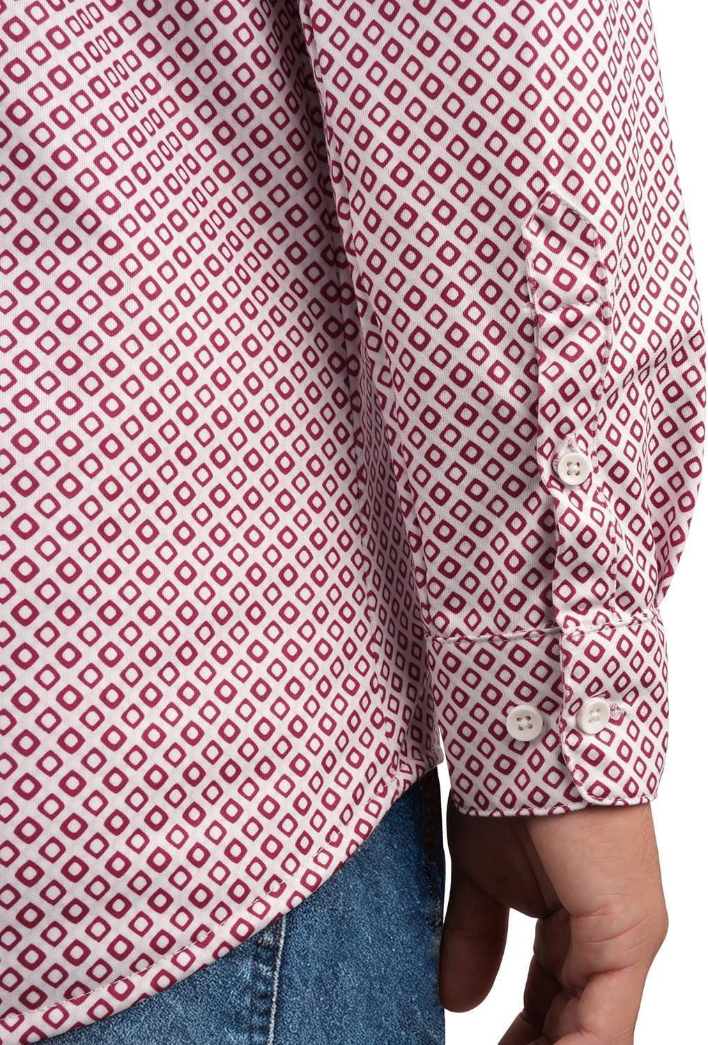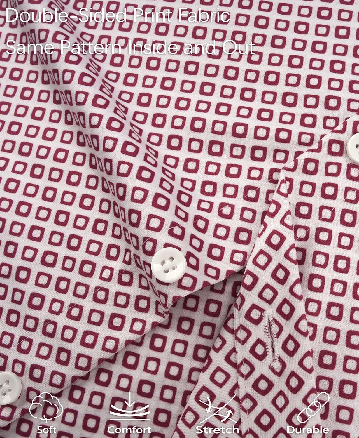 KYKU Mens Printed Casual Shirts Soft Long Sleeve Button Down Shirts, Regular Stretch, with Pocket(White Red Square Long Sleeve Shirts for Men)