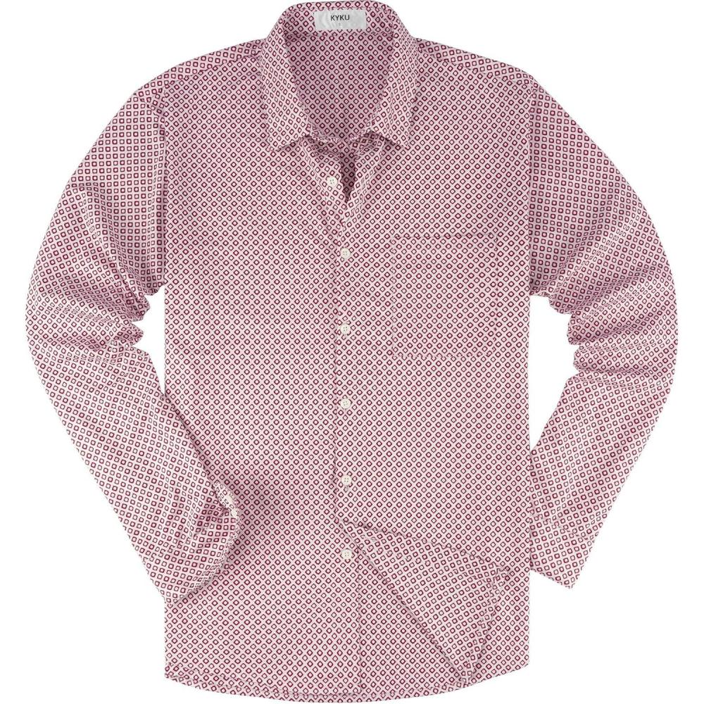 KYKU Mens Printed Casual Shirts Soft Long Sleeve Button Down Shirts, Regular Stretch, with Pocket(White Long Sleeve Shirts for Men)